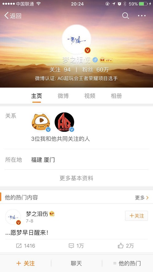 同時,AG超玩會官方微博和老帥、夢淚等超玩會隊員也都與虎牙直播官微互粉。如此發(fā)展,似乎虎牙這次的“王者榮耀大神”八成就是職業(yè)戰(zhàn)隊中人氣超高的AG超玩會了!現(xiàn)在,我們只需等官方頒布頒發(fā),之后一起慶祝了!