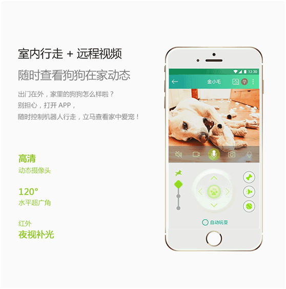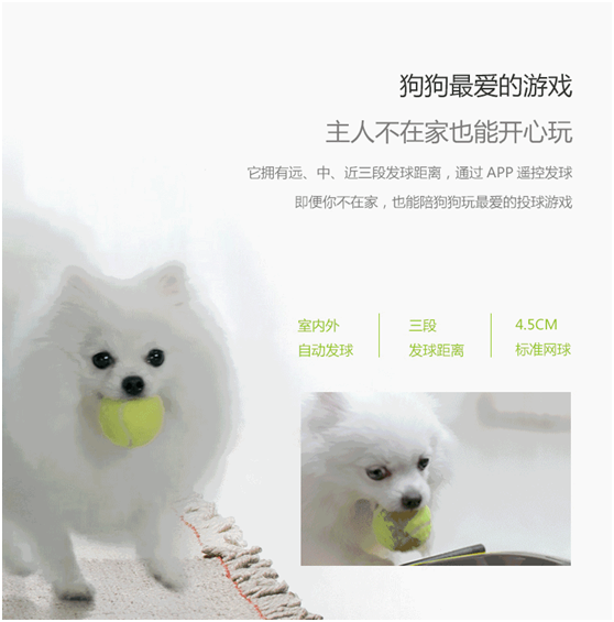 小蟻智家寵物陪伴機器人這是目前市面上第一款關(guān)注狗狗身心健康的智能產(chǎn)品,擁有智能投球、喂食,遠(yuǎn)程語音、視頻、戶外遛狗等功能,將開啟智能養(yǎng)寵新時代。