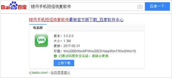 4,接著在網(wǎng)上搜索并下載最新版的“樓月手機(jī)短信恢復(fù)軟件”,截至小編發(fā)文時(shí),最新版本為V3.5,更新日期為2017年5月31日。說(shuō)明:如果喜歡英文版軟件的話,也可以下載該軟件在海外發(fā)布的英文界面軟件,軟件名稱為Cok SMS Recovery。