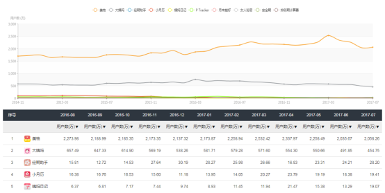 日前,知名第三方數(shù)據(jù)機(jī)構(gòu)艾瑞發(fā)布7月份APP指數(shù),,顯示美柚月獨(dú)立設(shè)備數(shù)(月活)為3164萬(wàn)臺(tái),是第二名的3.55倍。