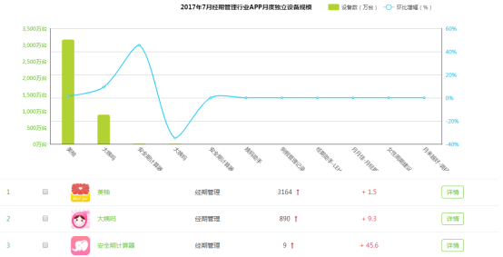 美柚獲得主管部門必定,得益于公司扎實(shí)的業(yè)務(wù)基礎(chǔ)。按照近日數(shù)家權(quán)威第三方數(shù)據(jù)機(jī)構(gòu)的監(jiān)測(cè),美柚在經(jīng)期辦理行業(yè)的壟斷地位越發(fā)安靖。