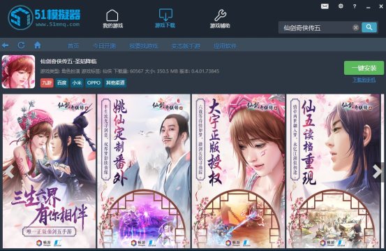1、 首先我們要下載一款安卓模擬器,目前51模擬器已經(jīng)收錄了很多渠道版本的仙劍奇?zhèn)b傳五手游了,因此在這里保舉各位安置51模擬器。