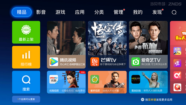 海信電視可通過U盤下載第三方軟件市場當(dāng)貝市場(),安置想要下載的電視直播、點播軟件,如當(dāng)貝影視快搜(),海量直播、點播資源包羅萬象,想看就看。