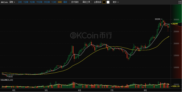 按照國內(nèi)知名數(shù)字資產(chǎn)交易平臺OKCoin幣行的數(shù)據(jù)顯示,今日比特幣價格處于 28000 附近高位震蕩,多頭力量較強,下午出現(xiàn)沖高上漲,截止發(fā)稿前最新交投于 28324 附近;