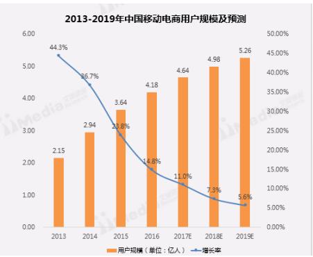 iiMedia Research(艾媒咨詢)數(shù)據(jù)顯示,截至 2016 年底,中國(guó)移動(dòng)購(gòu)物用戶規(guī)模達(dá)到4. 18 億人,增長(zhǎng)率達(dá)13.7%,預(yù)計(jì)到 2018 年中國(guó)移動(dòng)電商用戶規(guī)模將接近 5 億。