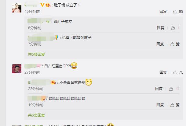 對(duì)此,網(wǎng)友調(diào)侃稱,果然是自古紅藍(lán)出cp,以后是不是可以叫做“肚子餓了么”了?