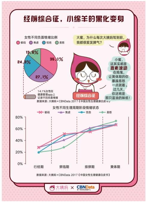 消費(fèi)篇:經(jīng)前綜合征遍及存在 行經(jīng)期前最易沖動(dòng)消費(fèi) 6 成女性不但貪戀“薄”情 經(jīng)期總是發(fā)脾氣的姐妹不要慌,14.1%的女性記錄了本身在差別生理周期階段有差別程度的負(fù)面情緒,并非只有你發(fā)脾氣。