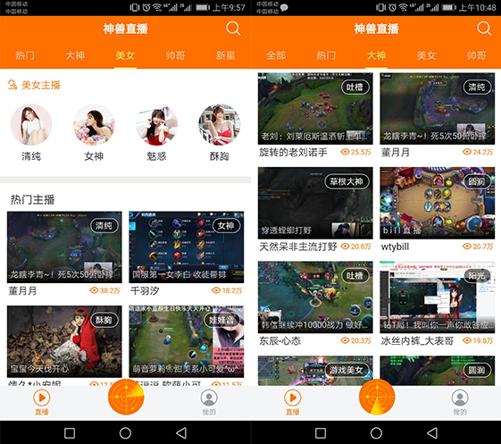 不管你是喜歡看美女主播、小鮮肉直播,還是只對游戲直播感興趣,神獸直播能滿足你的需求。平臺聚合了各大直播平臺的大牌知名主播,游戲大神、美女直播、帥哥直播隨便挑。