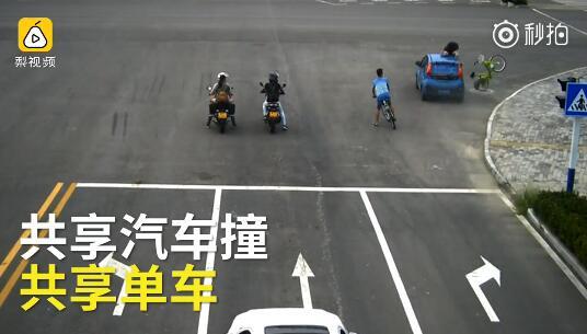 日前,安徽某路口發(fā)生一起車禍,肇事車輛系一輛藍色共享汽車,被撞者是一名騎共享單車的男子。據監(jiān)控顯示,,被撞者當時在路口等紅燈,突然從邊上竄出一輛汽車。汽車將人撞飛后帶出數(shù)米遠。旁邊的小哥見狀迅速上前查看情況并報警。