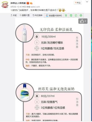 有網(wǎng)友爆料稱,有著 1000 萬多粉絲的微博大V@種草達(dá)人綿綿醬,在 8 月 9 日頒發(fā)了一篇點(diǎn)贊數(shù)過千的微文《 12 款熱門潔面測評,快來看你種草的是不適合你》,嚴(yán)重抄襲網(wǎng)易美學(xué)平臺上的一篇原創(chuàng)的PGC評測文章《 5 大膚質(zhì)實(shí)測 12 款熱門潔面,性價比王花落誰家? 》。網(wǎng)易美學(xué)作為一個專注于發(fā)現(xiàn)和分享的護(hù)膚美妝平臺,自上線以來便將重心放在提供高價值產(chǎn)品和信息上,生產(chǎn)了不少優(yōu)質(zhì)內(nèi)容。網(wǎng)易美學(xué)平臺上的 PGC內(nèi)容被引用借鑒的情況時有發(fā)生,但這篇文章竟然從標(biāo)題抄到內(nèi)容,從圖片抄到數(shù)據(jù),甚至連版式也相差無幾,讓人嘆服。