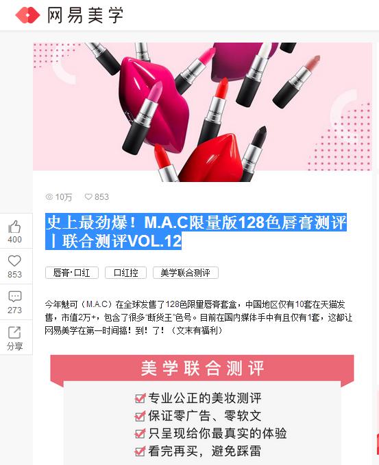 粉絲數(shù)六七十萬的微博大V@化妝師selina也被網(wǎng)友舉報其頒發(fā)的微博文章《MAC子彈頭口紅熱門色號試色評測》,抄襲網(wǎng)易美學(xué)評測文章《史上最勁爆!M.A.C限量版 128 色唇膏測評丨聯(lián)合測評VOL.12》。除了排版變更了一番外,案牘基本又是如出一轍……
