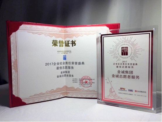 8 月 18 日,金誠(chéng)集團(tuán)榮膺 2017 企業(yè)社會(huì)責(zé)任榮譽(yù)盛典“最佳志愿辦事獎(jiǎng)”,這是對(duì)金誠(chéng)八年來(lái)企業(yè)社會(huì)責(zé)任踐行者最大的必定,也是每一位金誠(chéng)人無(wú)私奉獻(xiàn)愛(ài)的回聲。
