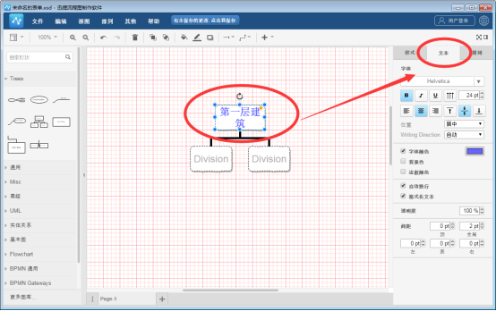將思維導(dǎo)圖的素材添加到編纂?yún)^(qū)域后,可以在素材上添加文本內(nèi)容。只需要選中圖形素材,即可在其中輸入文字內(nèi)容。若是需要對文字格式進行編纂,選中文字內(nèi)容后,在左側(cè)的“文本”版塊中,即可對文字的顏色、樣式等等進行設(shè)置。