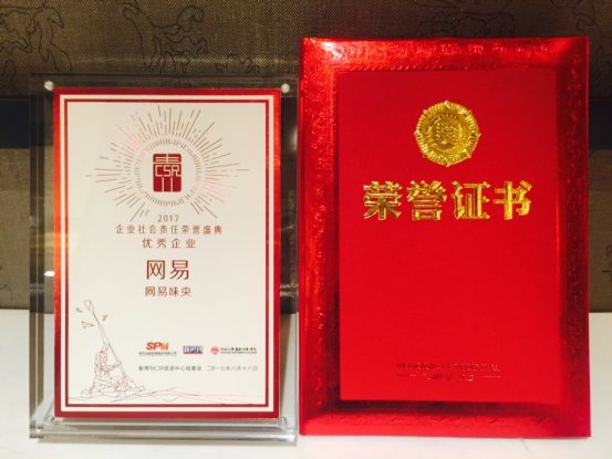 圖注:2017企業(yè)社會(huì)責(zé)任榮譽(yù)盛典,網(wǎng)易獲頒優(yōu)秀企業(yè)獎(jiǎng)