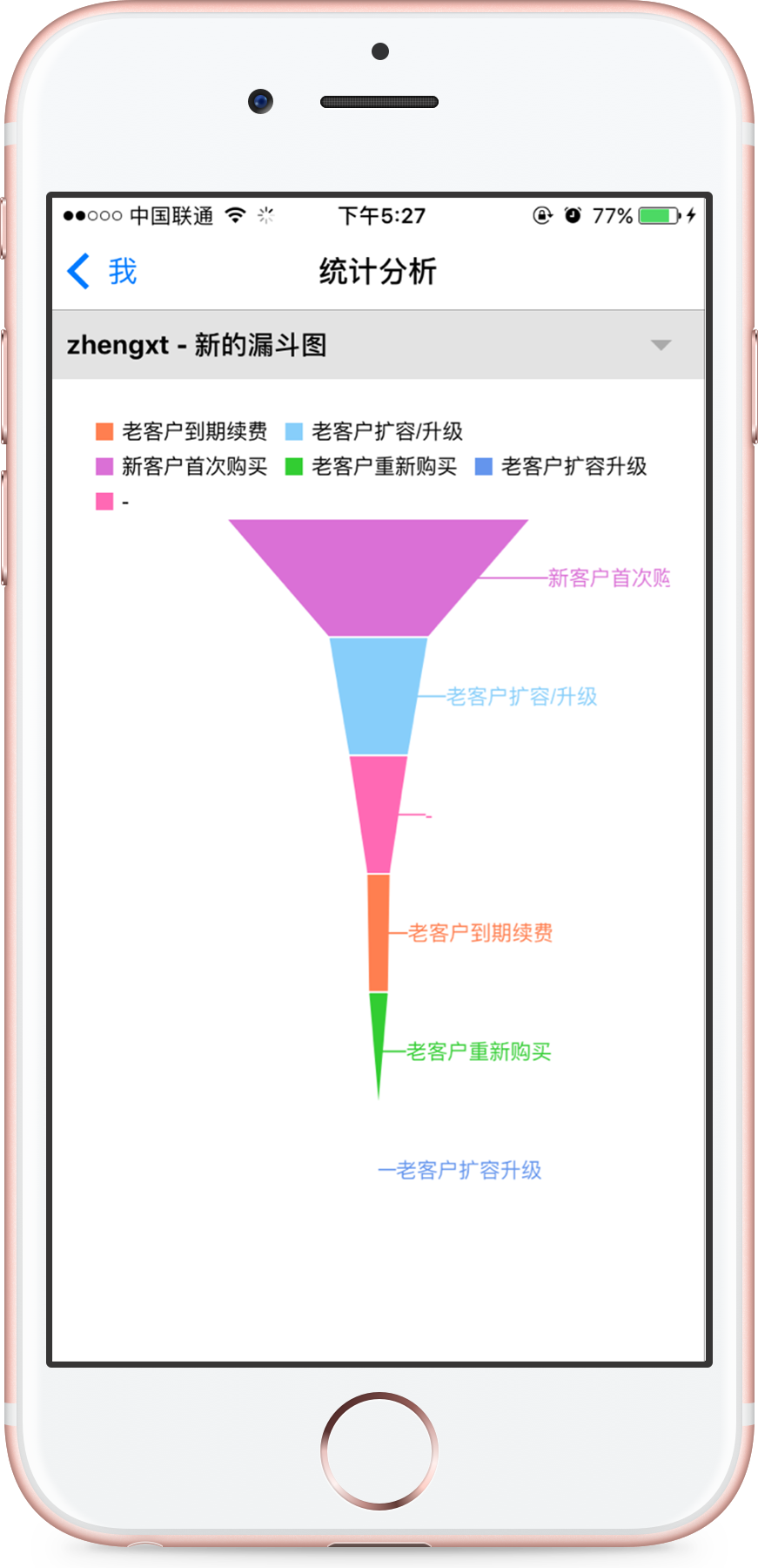 針對(duì)這一情況WiseCRM365 此次升級(jí)在數(shù)據(jù)分析上做了大力強(qiáng)化,不管是產(chǎn)品部門、銷售部門、客戶辦事部門都可以獲取到所需的數(shù)據(jù)資源信息。V3. 8 的移動(dòng)APP中新增統(tǒng)計(jì)分析銷售漏斗,完全同步PC端分析數(shù)據(jù),消除本來電腦帶來的地域限制,隨時(shí)隨地查看實(shí)時(shí)數(shù)據(jù),多種圖表展現(xiàn)方式直不雅觀顯示數(shù)據(jù)結(jié)果,將數(shù)據(jù)覆蓋到每個(gè)獨(dú)立的個(gè)體,不但僅是用于每個(gè)月的全體會(huì)議上。