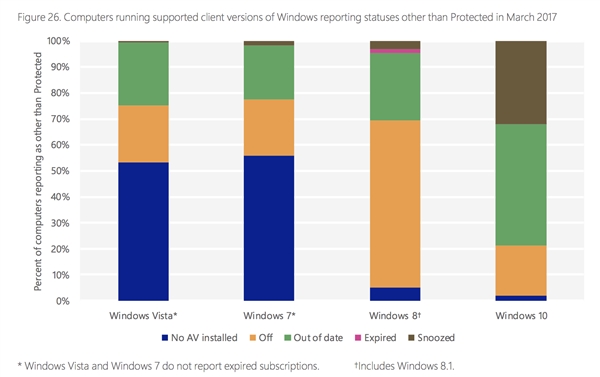 從陳訴來看,,Windows Vista和Windows7 都有超過50%的電腦未安置任何防病毒軟件,還有一大部分人直接把殺毒軟件關(guān)了,別的一大部分人的殺毒軟件已經(jīng)過期(未更新)。