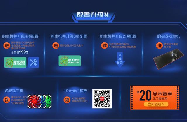 購主機(jī)并升級(jí) 3 項(xiàng)配置,送順豐優(yōu)選 100 元代金卡