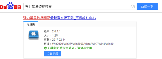 1、使用常用電腦的瀏覽器搜索“強(qiáng)力蘋果恢復(fù)精靈”,將軟件下載安置至電腦上,之后將誤刪微信聊天記錄的蘋果手機(jī)連接至電腦上,同時開啟飛行模式。