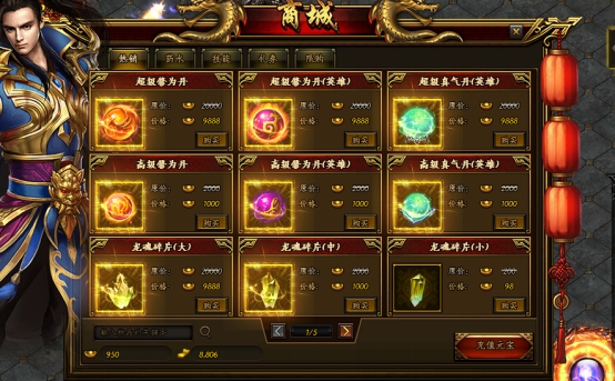傲天藍(lán)月傳奇商城一共分為熱銷、藥水、技能、禮券、限購(gòu)五大區(qū)域,每個(gè)區(qū)域所需的流通貨幣完全差別。熱銷商城和藥水只能靠元寶來搞定,這就牽涉到充值元寶的問題;技能和禮券商城的商品兌換以禮券為單位,相對(duì)更容易一些。至于限購(gòu),那應(yīng)該算是時(shí)下的折扣商品花車。先籠統(tǒng)介紹這么多,還是一個(gè)個(gè)地看吧??匆谎凵厦娴臒徜N商城,威力無(wú)窮的超級(jí)修為丹、超級(jí)修為丹(英雄)、超級(jí)真氣丹(英雄),各種大小的龍魂碎片都赫然在列。這一切都需要元寶來才能搞定,動(dòng)輒 9000 元寶,不是我等小民可以消費(fèi)得起的。這還只是熱銷中展出的五分之一的產(chǎn)品,余下的四頁(yè)需要大家本身去了解,越往后翻價(jià)格越自制。不過,小小地充值 10 元人民幣拿到 1000 元寶也能買點(diǎn)小東小西的。免費(fèi) 10 元首沖、搶紅包