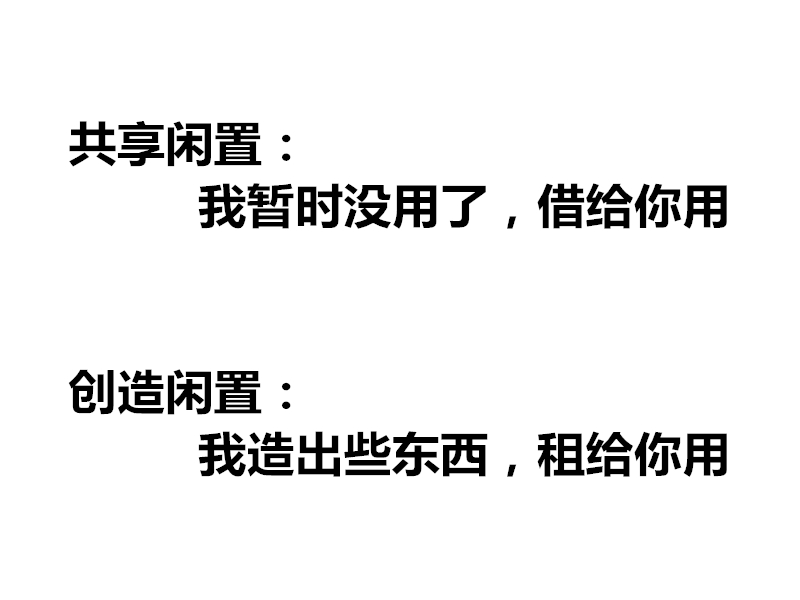 共享閑置的概念是:我暫時(shí)沒用了,借給你用。