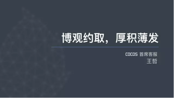 大家好,我是Cocos引擎創(chuàng)始人王哲。今年我對外的title改叫「首席客服」了,就是為了時刻提醒自己服務好在座的各位開發(fā)者。大家有問題可以隨時在引擎論壇上找到我。