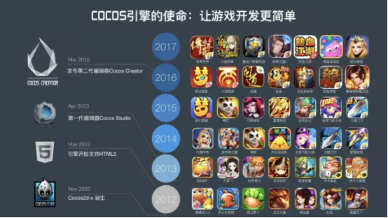 Cocos從2010年發(fā)布第一個版本到現(xiàn)在,已經(jīng)有6年多的歷史了,但我們的使命從來沒有變過,那就是『讓游戲開發(fā)更簡單』。我們很驕傲能做到這樣一件中國歷史上從未有人做到過的事情:讓有夢想的年輕人,在只有幾百萬甚至幾十萬研發(fā)預算的情況下,仍然可以使用一套開源、免費、經(jīng)過數(shù)以萬計游戲證明過的成熟引擎,開發(fā)出商業(yè)成功的游戲,做到幾億的月流水,幾十億的公司價值,實現(xiàn)財富自由。我們打破了游戲大廠的技術壁壘,今天使用Cocos引擎的開發(fā)者,和網(wǎng)易夢幻西游、任天堂的火焰紋章、盛大的熱血傳奇、巨人征途等等大作,站在同樣的技術起跑線上。我們很自豪能做到這一點。