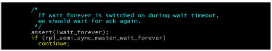 < rpl_semi_sync_master_timeout,那么繼續(xù)等待rpl_semi_sync_master_timeout -