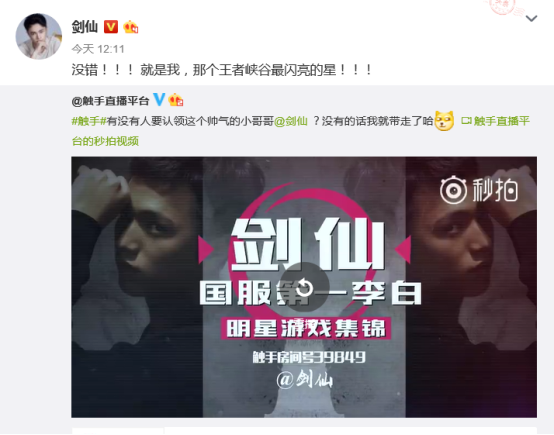 不需要太多話語,官方認(rèn)可的“國服第一李白”、最高顏值李白主播,劍仙已然是王者峽谷最閃亮的星。相信劍仙已經(jīng)收到了粉絲們的祝福,,所以今天一早就開播與粉絲再續(xù)峽谷之旅,不過病去如抽絲,劍仙還是要早點(diǎn)下播去把藥吃完,才能再破一個全新的記錄哦!