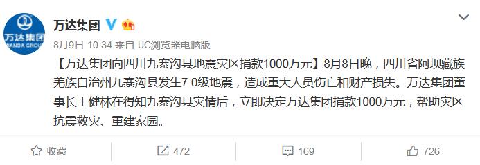 巨人網(wǎng)絡(luò)通訊聲明:本文標(biāo)題《九寨溝地震 19 人死亡,萬達(dá)捐款 1000 萬,卻有網(wǎng)友嫌棄“捐太少!”》,本文關(guān)鍵詞 九寨溝,地震,人,死亡,萬達(dá),;如發(fā)現(xiàn)本文內(nèi)容存在版權(quán)問題,煩請?zhí)峁┫嚓P(guān)信息告之我們,我們將及時溝通與處理。本站內(nèi)容系統(tǒng)采集于網(wǎng)絡(luò),涉及言論、版權(quán)與本站無關(guān)。