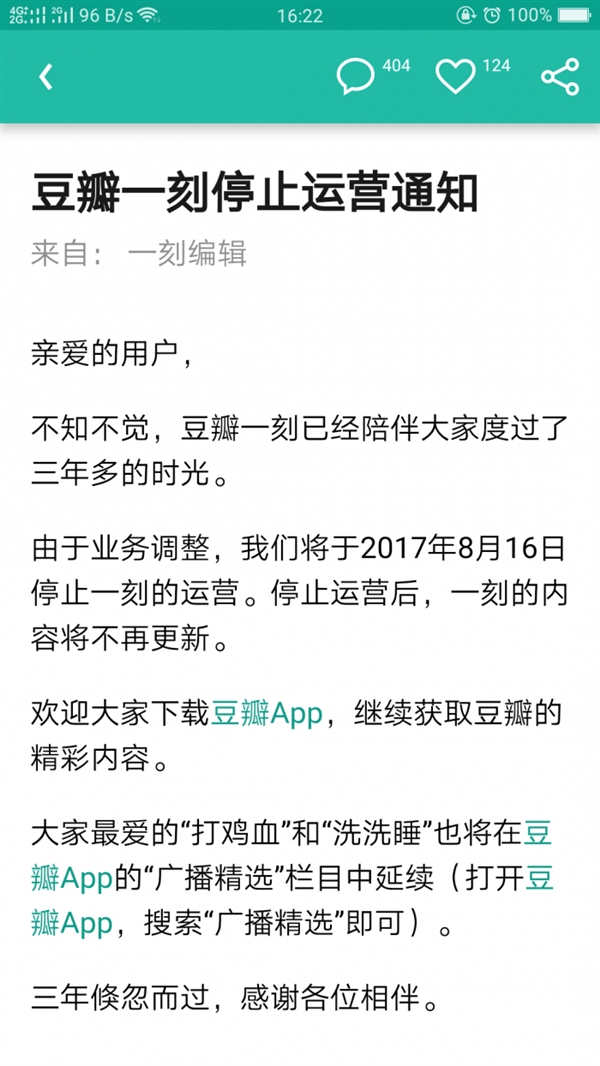 巨人網(wǎng)絡(luò)通訊聲明:本文標(biāo)題《豆瓣一刻頒布頒發(fā)8月16日停止運(yùn)營!不再更新內(nèi)容》,本文關(guān)鍵詞 豆瓣,一刻,頒布,頒發(fā),8月,;如發(fā)現(xiàn)本文內(nèi)容存在版權(quán)問題,煩請?zhí)峁┫嚓P(guān)信息告之我們,我們將及時溝通與處理。本站內(nèi)容系統(tǒng)采集于網(wǎng)絡(luò),涉及言論、版權(quán)與本站無關(guān)。
