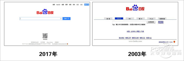 百度的變革不大,這主要是因?yàn)椤瓕?shí)在沒(méi)啥可變的。不過(guò)對(duì)比 2003 年的百度首頁(yè),我們依然能夠看出百度的業(yè)務(wù)正在趨向于統(tǒng)一。之前的分段式標(biāo)簽合并成綜合式搜索框,頁(yè)面下方也增加了手機(jī)百度的二維碼圖案。當(dāng)然最最重要的,還是整個(gè)頁(yè)面變得更加整潔了,節(jié)省了用戶的點(diǎn)擊查找成本。