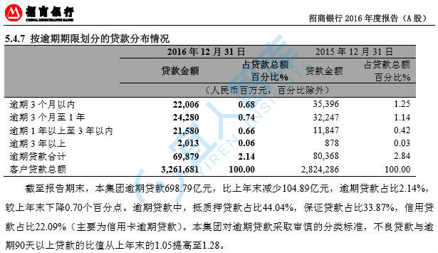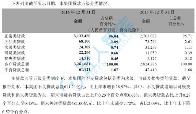 招商銀行 2016 年報(bào):貸款五級(jí)分類(lèi)情況