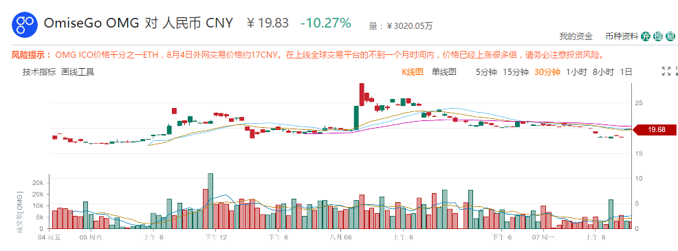 OMG于 8 月 4 日晚 9 點(diǎn)在比特兒bter交易平臺開通交易,每個(gè)OMG的成本大約在2.5-2. 7 元擺布,上線之后漲幅即刻超過60%,今日價(jià)格維持在 19 元擺布。