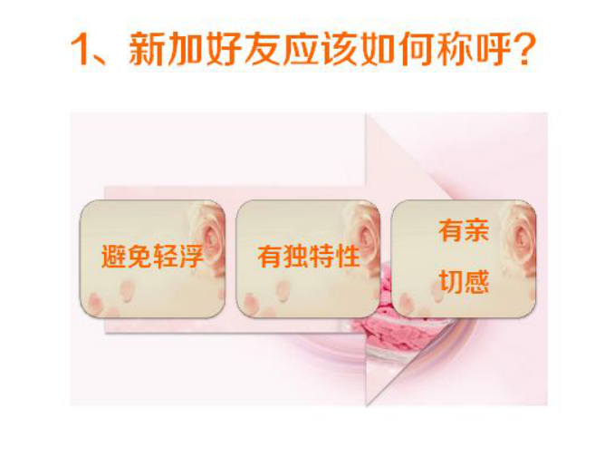 生活中很多人在不了解對(duì)方愛好的情況下,習(xí)慣用本身的方式去稱呼對(duì)方?!坝H愛的”、“寶貝”等很多人認(rèn)為能夠立刻拉近相互的稱呼在盧艷霞老師看來是過于曖昧的。還有一些人由于交友目的性太強(qiáng),導(dǎo)致聊天像在查戶口,,這樣很可能被別人中斷聊天。
