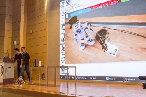 1P做的一款A(yù)R游戲,利用手機重力感應(yīng)控制,或者采用鼠標(biāo)控制機器人的運動,在現(xiàn)場雖然只是展示一個DEMO版本但也讓人眼前一亮。他們表示還會開發(fā)機器人+AR結(jié)合的更多功能,應(yīng)用于不同場景。這個隊伍的創(chuàng)意也獲得全場評委一致認(rèn)可,最后捧走冠軍獎杯。