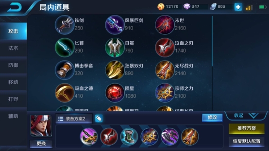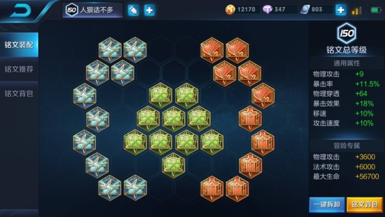 銘文:10個(gè)鷹眼10個(gè)狩獵5無雙5禍源,比擬以往三個(gè)10的銘文,藍(lán)煙這次的銘文有些均衡,物理攻擊、攻速、移速、暴擊率和暴擊效果都兼顧到了。