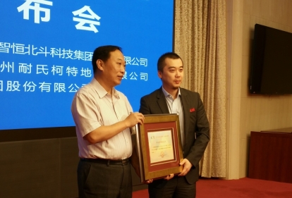 圖:第十三屆全運(yùn)會(huì)組委會(huì)常務(wù)副秘書(shū)長(zhǎng)殷向杰(左)向國(guó)雙頒布供應(yīng)商贊助證書(shū)