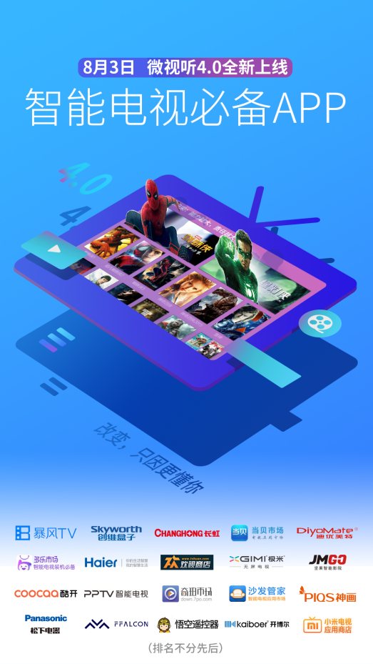 8月3日,微視聽終于迎來了年度重大更新“微視聽4.0”,20家互聯(lián)網(wǎng)知名平臺聯(lián)合首發(fā)這次的版本大更新。