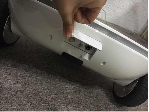 開機鍵與充電口皆在在車子屁股后面,掀開蓋子就可以看到(忽略我不想露出的手指)