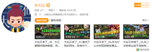 除日常直播外,張大仙的還制作了《大仙指法秀》《大仙又來了》等自制節(jié)目,英雄教學(xué)視頻播放總量達(dá)到驚人的 6164 萬,露娜、趙云、李白、猴子...教學(xué)視頻基本涵蓋了游戲內(nèi)的所有英雄,堪稱教學(xué)級別的游戲操作。