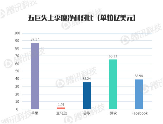 近日,又到了上市公司扎堆公布季度財(cái)報(bào)的時(shí)間。蘋(píng)果、谷歌、微軟、亞馬遜、Facebook,這五家美國(guó)頂級(jí)科技巨頭的最新一季財(cái)報(bào)都新鮮出爐了。從財(cái)報(bào)數(shù)據(jù)看,幾大巨頭表示紛歧,騰訊科技從中摘取一些關(guān)鍵的數(shù)據(jù)進(jìn)行分析、對(duì)比,或許會(huì)讓你對(duì)這些公司上個(gè)季度的“收成”有一個(gè)更為直不雅觀的認(rèn)識(shí)。