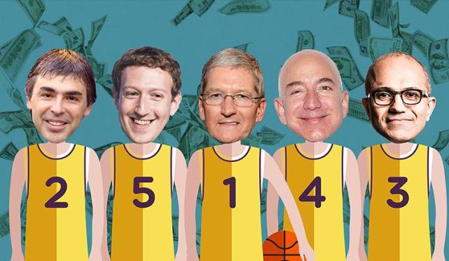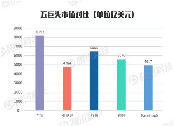 上圖為八月二日網(wǎng)絡(luò)上發(fā)布的五巨頭市值數(shù)據(jù),從圖中可以看出,蘋(píng)果和谷歌依然具有領(lǐng)先優(yōu)勢(shì)。值得注意的是,即將步入 5000 億美元俱樂(lè)部的Facebook,由于亞馬遜股價(jià)在其財(cái)報(bào)發(fā)布后下跌,成為美國(guó)市值第四高的科技公司。