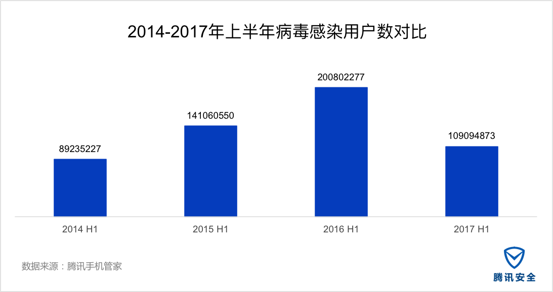 而在移動(dòng)端, 2017 年上半年病毒感染用戶數(shù)為1. 09 億,同比減少45.67%,但上半年騰訊手機(jī)管家查殺病毒次數(shù)達(dá)到6. 93 億次,同比增長(zhǎng)124.24%,二維碼成為了最容易導(dǎo)致用戶手機(jī)中毒的渠道。陳訴分析認(rèn)為,惡意程序和木馬病毒制作成本降低、傳播渠道多樣化是造成過億用戶感染病毒的重要因素,但移動(dòng)端安適類APP的普及又使得用戶有效抵御了病毒木馬和惡意程序的侵害。