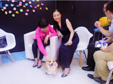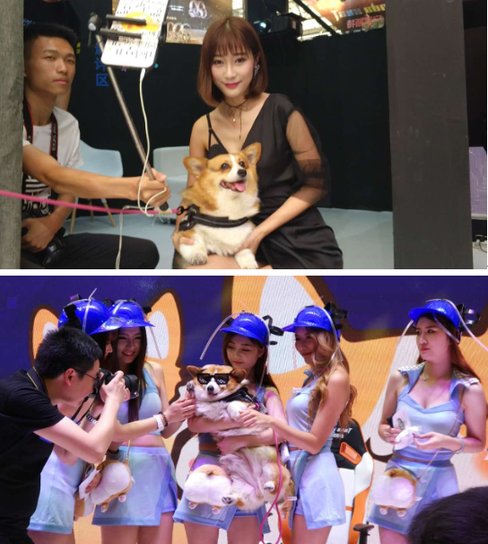 (李部長(zhǎng)與盛天網(wǎng)絡(luò)展臺(tái)網(wǎng)紅show dog萊米互動(dòng))