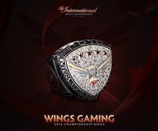 別的今天V社公布了TI6冠軍戒指的式樣,戒指正中央是Wings戰(zhàn)隊(duì)的LOGO,,周圍雕刻著“International Champion 2016”的字樣,戒指兩側(cè)則是冠軍盾的圖案。