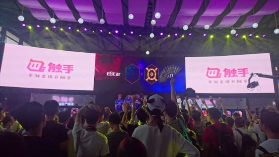 聽聞eStar和XQ戰(zhàn)隊將在觸手展臺開戰(zhàn),人流很快朝這邊涌來。