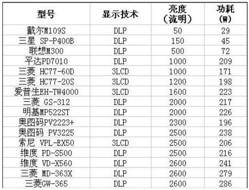 普通的家用投影儀雖然在亮度、顯示效果方面有著不錯(cuò)的表示,但是也陪同著功耗、發(fā)熱、噪音等一系列問題,這些都會(huì)直接影響到消費(fèi)者的使用體驗(yàn)。下圖是某網(wǎng)站上,關(guān)于部分投影儀產(chǎn)品的功耗測試結(jié)果: