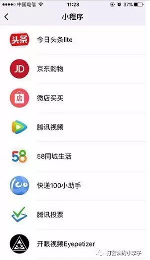 ??2-2、小程序列表直不雅觀看,小程序圖標(biāo)和小程序名稱(chēng)。圖標(biāo)有創(chuàng)意,名稱(chēng)簡(jiǎn)短精煉一個(gè)詞說(shuō)明該應(yīng)用是干什么的。舉個(gè)栗子,某小程序名字為:打醬油的小李子,這種小程序在用戶(hù)眼中基本活不到兩分鐘。