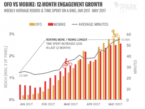 隨著共享單車彩虹大戰(zhàn)升級(jí),本錢作用下,共享單車行業(yè)尾部正開始清場(chǎng),而ofo、摩拜之間的頭部之爭(zhēng)也成為行業(yè)未來趨勢(shì)的關(guān)鍵。日前,來自美國(guó)紐約知名的研究公司7Park Data發(fā)布了關(guān)于中國(guó)共享單車市場(chǎng)的研究陳訴,,陳訴稱ofo已占據(jù)了65%的市場(chǎng)份額,處于行業(yè)領(lǐng)先地位。而最新極光數(shù)據(jù)行業(yè)監(jiān)測(cè)陳訴則顯示:在市場(chǎng)滲透率、日活躍用戶、新增用戶數(shù)等幾項(xiàng)核心數(shù)據(jù)指標(biāo)方面,ofo均已拉大與摩拜間的距離,頭部?jī)?yōu)勢(shì)明顯。