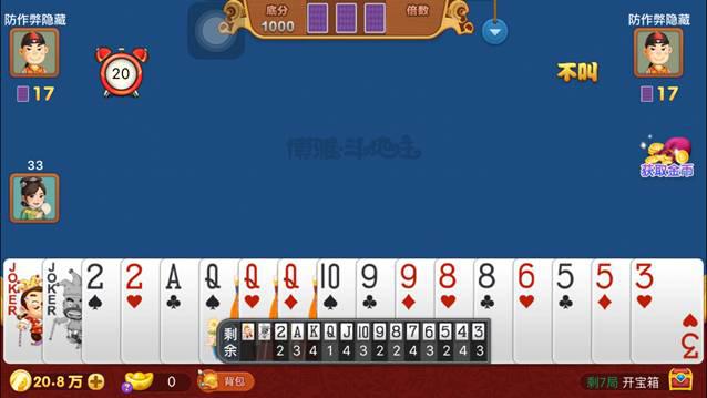 這是最基本的技巧。拿到牌首先就要看有沒有斷牌,要時刻注意你斷牌在出牌過程中出現(xiàn)沒有,如果到最后還沒有出,那成炸的可能就八九不離十了。好比你手上沒有7,外面 7 的分布可能是有三種:炸,單和三,兩對。然后你按照出單、出對、出三帶的過程看有沒有見7,再分析成炸的可能。這只是大體判斷。出單不見 7 還有可能是帶 7 的順子,出對不見 7 也有可能是 7 的三帶或含 7 的連對,還要按照后面的出牌及牌型變革進一步精準判斷。